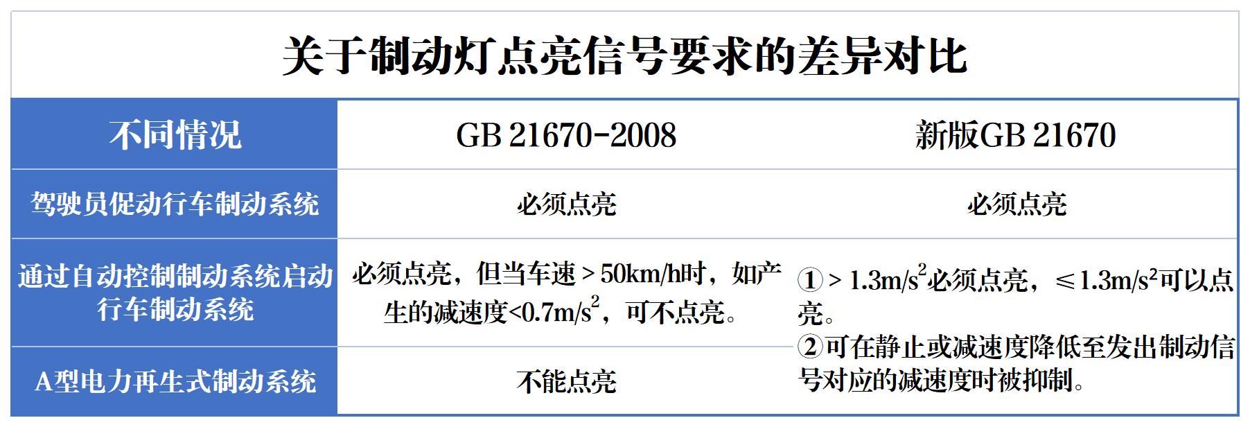 此外,文档还改变了能量回收时刹车灯的电量要求,具体变化可见小通制作的表格。你知道,《GB 在21670-2008标准中,“A型电力再生刹车系统”的要求是“不能点亮”,最终的调整可以及时提醒后方车辆和其他交通参与者,从而尽可能避免追尾等交通事故。