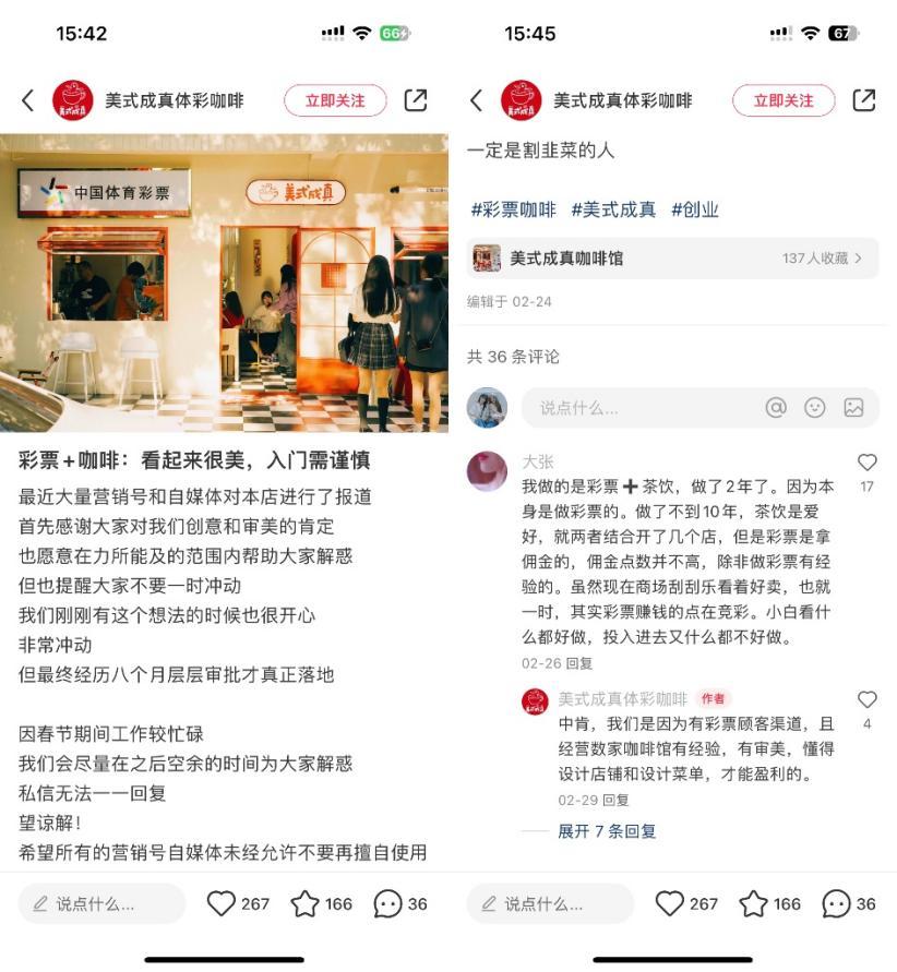 美式成真咖啡店宜昌曾在小红书发布笔记,“彩票 咖啡:看起来很漂亮,入门要小心。其中包括提到,他们的彩票经营许可证经过八个月的层层审核才真正落地。在评论区,彩票茶店的老板也言传身教,指出新手很难做好“体育彩票” ”这个业态。