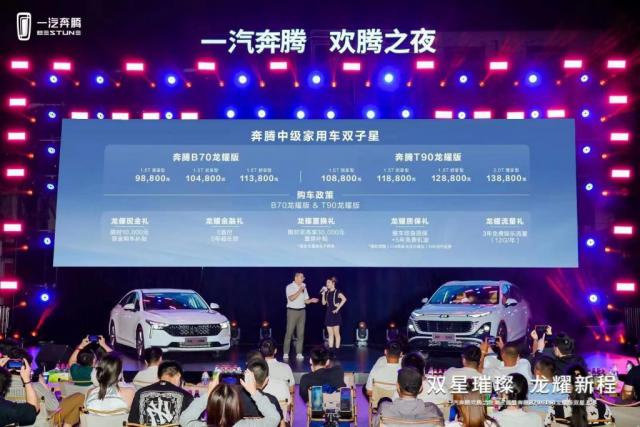 【车讯网 报道】9 月 26 日本,“双星璀璨龙耀新程”一汽奔流欢腾之夜在河南郑州快乐开启。一汽奔流中级家用双子星同步复兴上市-超安全舒适大家轿奔流 B70 龙耀版,三款车型售价。 9.88 万 -11.38 万元。大五座质享 SUV 奔流 T90 龙耀版,四款车的价格 10.88 万 -13.88 万元。五大龙耀买车礼限时发放,超值双优选助力家庭出行快乐升级。