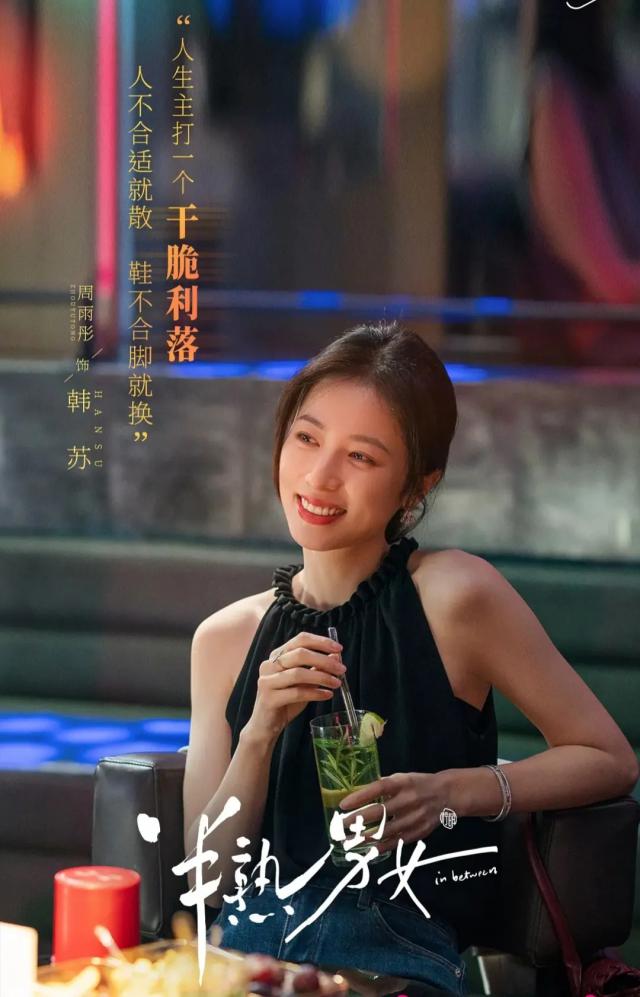 周雨彤在《半熟男女》中扮演女主角之一的韩苏。工作场所,是个精英;感情上,大女人一个。