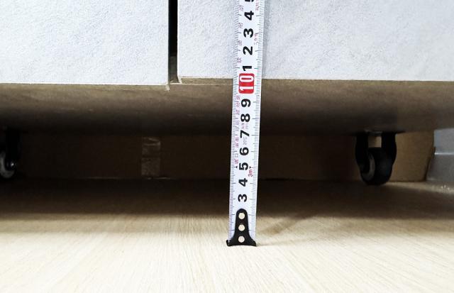 一提到整个房子的清洁,就不得不说家中那些低矮的空间,它们通常是扫地机器人的遗漏,成为灰尘隐藏的区域。以我们房间里的橱柜为例,橱柜的底部和地面大概是 10cm 在离地间隙,有很多扫地机器人卡在机身上方的“小帽子”激光雷达上,机身整体高度高于或恰好高于。 10cm,不能进入柜底清洗。再加上路面或柜底不平整,即使进去也有卡在里面的危险。