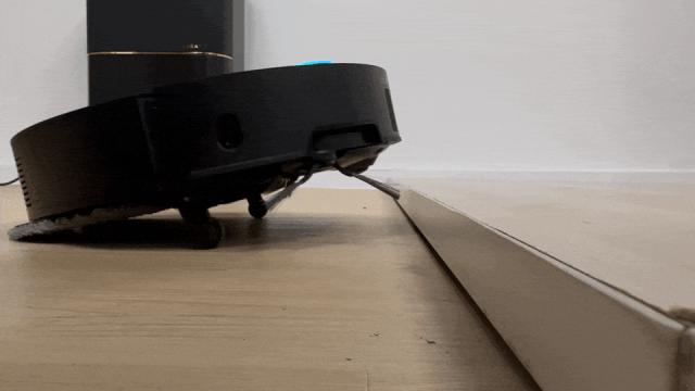 从动画中可以看到,追寻 X50 Pro 扫地机器人首先将整个机身抬起,然后跨越我们设置的难题,然后打开另一个区域的清洁工作。