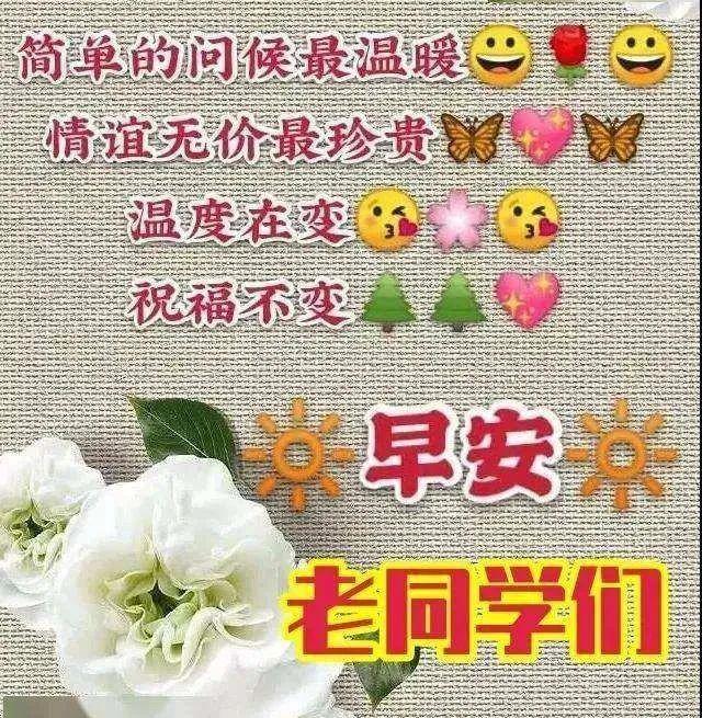 清晨的美丽像绿草一样芬芳,像河流一样清澈,像玻璃一样透明,像雨一样甜蜜。亲爱的老同学,早上好,祝你今天心情愉快!