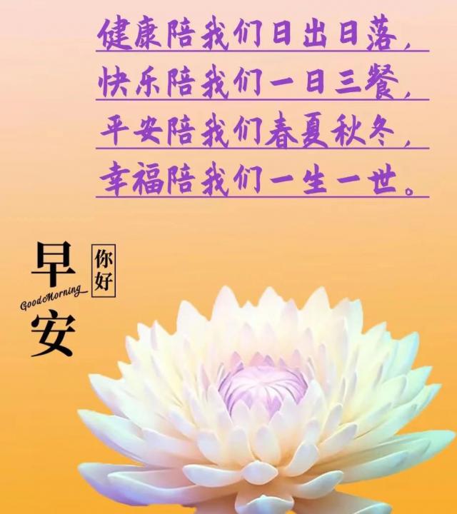 新的一天,阳光明媚。早上问候,每天温暖。真诚的祝福,心中的甜蜜。最美好的思念,最甜蜜的思念。友谊送给珍惜的人。幸福送给快乐的人。问候送给关心的人。安慰送给忧郁的人。祝福送给想念的人。祝朋友幸福!大家早上好!天天开心!