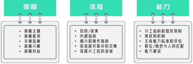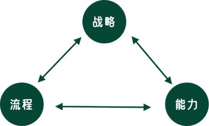就战略与能力的关系而言,战略牵引能力和能力发展是建立在战略的基础上的;同时,战略本身要受能力的限制,不能越过能力的边界,需要动态匹配。此外,过程会要求能力:相关责任主体需要具备哪些能力才能完成过程。从另一个角度来看,这是能力对过程的支持。