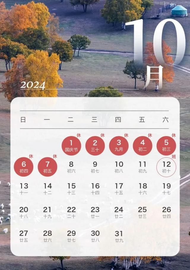 刚过完中秋节,国庆假期又来了。今年国庆节 10 月 1 日至 10 月 7 每天放假,共放假 7 天 9 月 29 星期天(星期天)10 月 12 每天(星期六)工作。这些人可以提前发工资。国庆假期快到了,月薪发放日在 1 日 -7 注意,你的工资可以提前支付。详细信息>>>