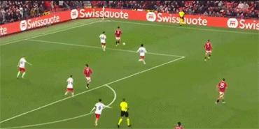 在比赛的最后阶段,马兹拉维在前场断球,乌加特把球传给了球。 B 费用,后者一脚劲射,但足球高于横梁。看到球没进,曼联队长跪在地上叹了口气,然后躺在草坪上。竞争对手梅森 · 芒特把他拉起来,告诉他要振作起来,比赛还没有结束,还可以继续努力。