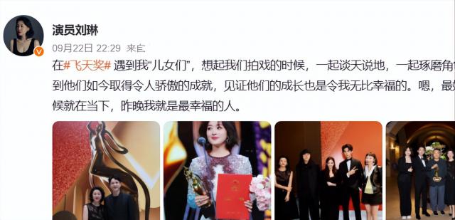 但是活动结束后,她的演讲更加温暖。她说她在飞天奖上看到了自己的孩子,见证了他们的成长,让她感到无比幸福。她昨晚是最幸福的。还搭配了几张照片。在照片中,是曾经和她搭档,演过孩子的演员。
