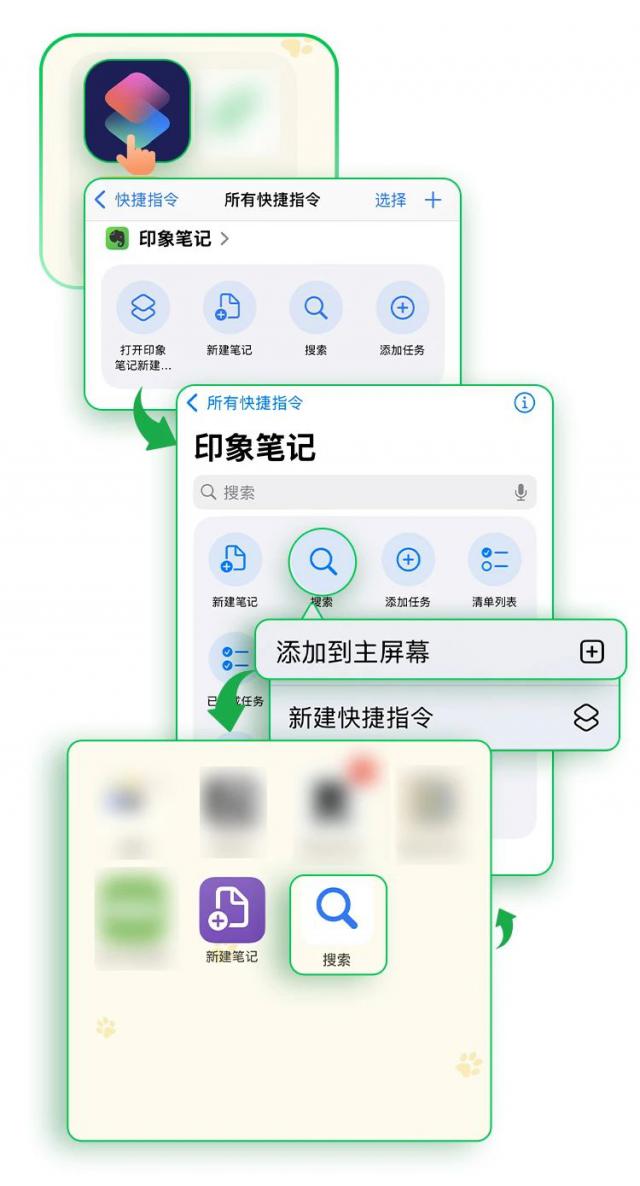 1. 进入「快捷指令」App,找到「印象笔记」,获得指令;