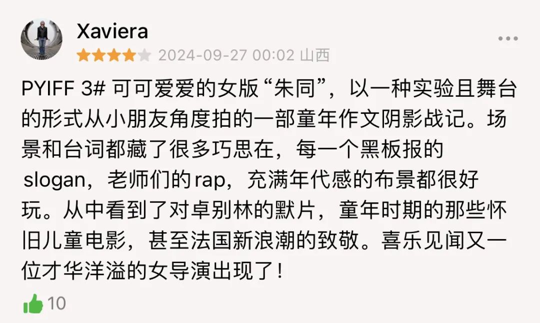 年轻导演马兰花的长片首作《不要把作文当回事》 9月26日,第八届平遥国际电影展藏龙大赛单位首播。首映场上有很多儿童观众很难买到票。在播出过程中,孩子们一次又一次地笑着,电影的首播也引起了业界的关注。电影导演马兰花、编剧马翼翔、制片人董邈、王储也在首播后与观众进行了创作交流。