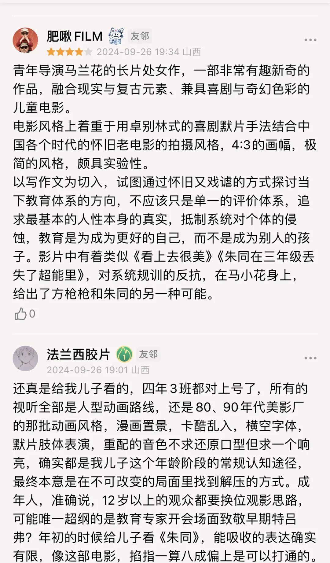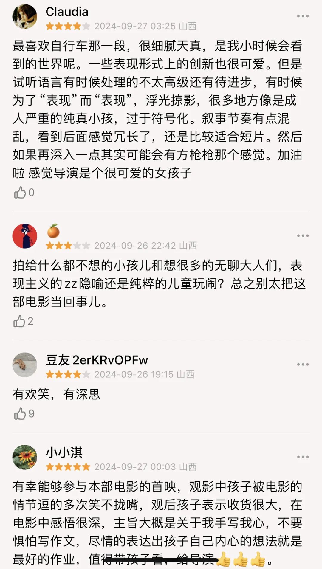 豆瓣影评人&影迷部分短评人