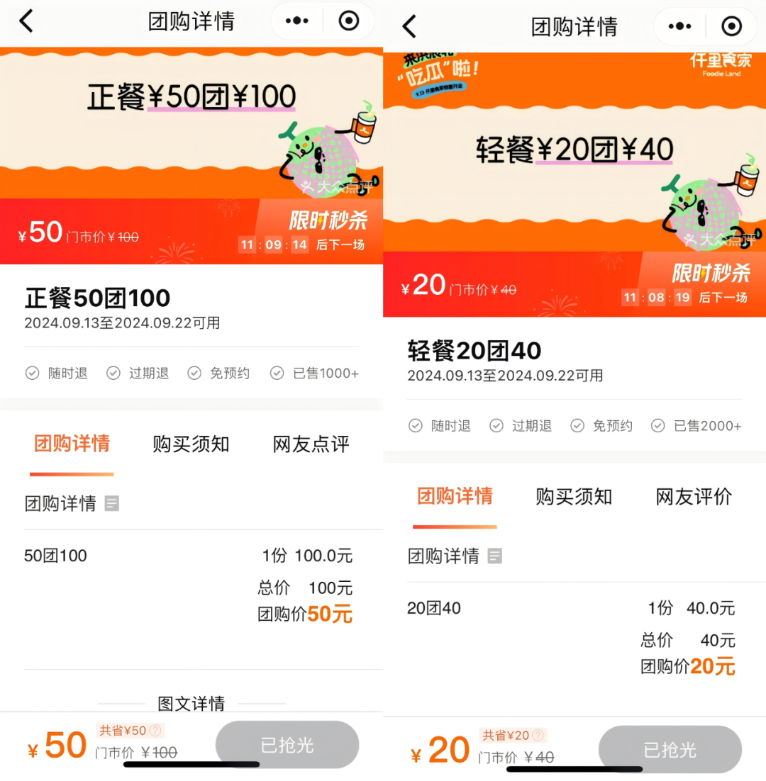 比如50团100的晚餐,20团40的轻餐,而且在开业当天,这些优惠券早就被抢走了。