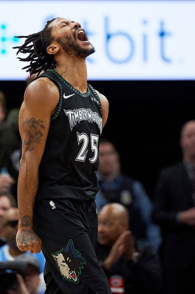 11月的晚上,在2万多名森林狼球迷的凝视下,罗斯首发出场41分钟,31投19中,其中3分球7投4中,职业生涯新高50分,4个篮板,6次助攻,2次断球,1次盖帽。尤其是第三节,他个人砍了19分,背着球队咬了一口。
