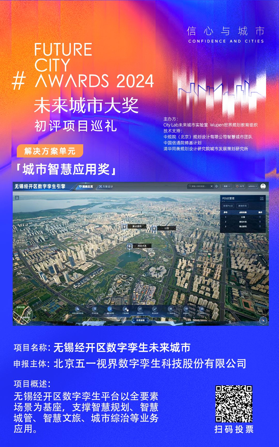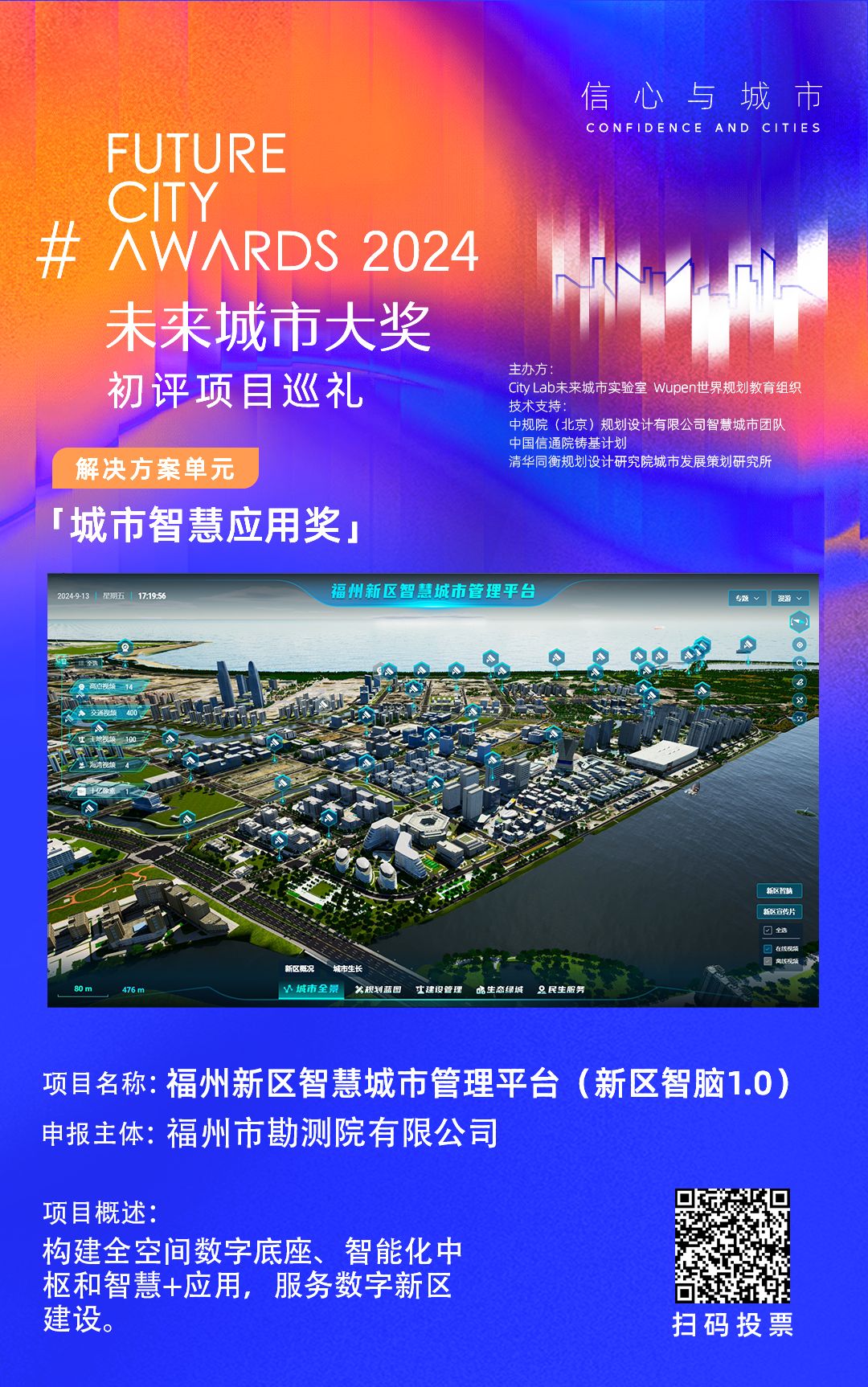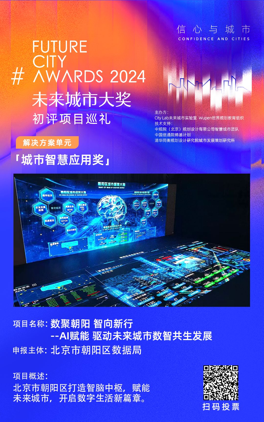 为促进社会关注,引起公众参与,本届未来城市大奖在初评阶段增加了公众投票环节。九月二十五日至十月十六日,公众可以进入组委会正式设立的投票平台(微信扫描下面照片的二维码进入),浏览每个单项奖项对应所有申报项目的图文介绍,投票投票支持的未来城市实证创新项目。