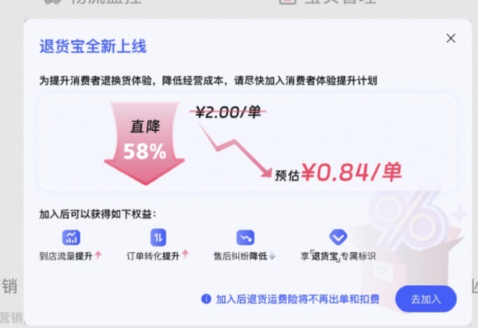 在天猫双11期间,“退货宝”再次降价,最高降幅达到58。%