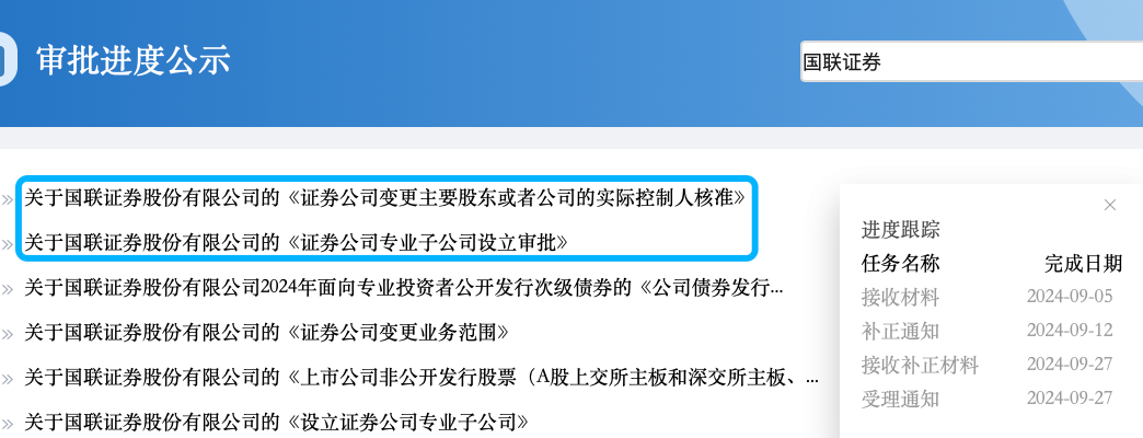官网信息显示,9月27日,中国证监会受理了国联证券变更主要股东、专业分支机构、民生证券变更控股股东、实际控制人、民生基金管理有限公司变更实际控制人、民生期货有限公司变更实际控制人等行政许可申请。