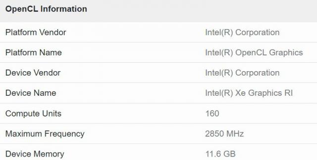 在最新的 GeekBench 英特尔下一代显卡的相关规格在基准测试中被曝光。这个新显卡被识别为“ Iri Xe Graphics RI ",据推测是一款拥有主流型号显卡的主流型号, 160 一个计算单元,相当于 20 个 Xe 核心。这个显卡的亮点之一就是它的高度 2.85GHz 与目前市场上的锐炫相比,这一次数 A 最高频率的系列显卡 2.10GHz 还是很高的,而且这可能还不是最后的频率,估计还有进一步提升的空间。