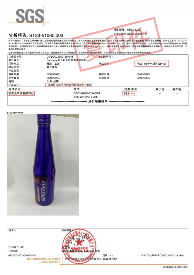 实打实提高超出 3 汽油标号的个点, Boostane 添加剂可以做到。