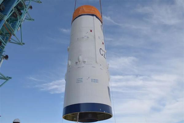 与以往的返回式卫星不同,为了满足卫星配备空间实验设备的需要,火箭和卫星在塔架待命后竖立,需要在发射前进行。 48 在整流罩塔上扣罩工作之前,大约需要一个小时的时间来安装卫星。