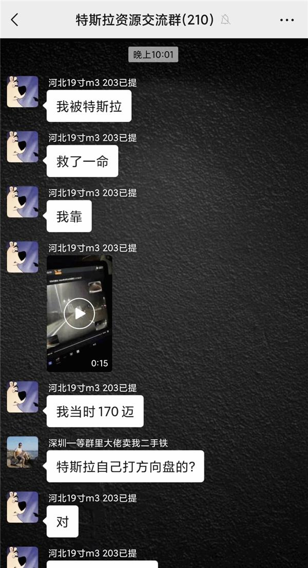 特斯拉车主在群里说,当时他的速度已经达到了。 170km/h,正是特斯拉自己打的方向,先制动后变道,特斯拉救了他一命。