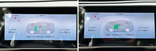 另外,我们还测试了充电效率。测量人员使用快充桩充电 10 几分钟后(波峰用电),电量从 15% 充至 续航里程增加了39%。 29公里,与车辆计算机预期的耗时基本一致。