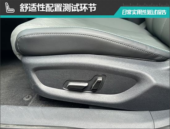 在舒适性配置方面,评价汽车前排座椅调节按钮位于座椅左侧,位置合理,操作方便。同时,驾驶员配备了两组记忆功能,具有良好的方便性能。此外,前排座椅还配备了加热和通风功能,舒适性极佳。