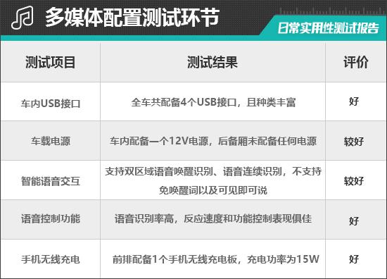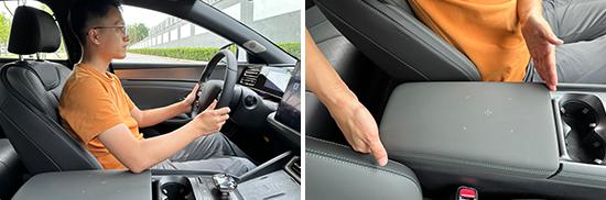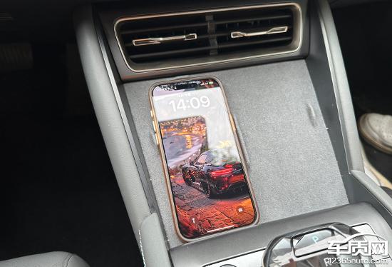 评估车还配备了前排 1 一款手机无线充电板,充电功率为 15W,位于换挡杆前,拿放手机非常方便,日常使用方便。
