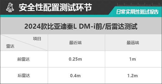 最远的前驻车雷达可以在那里 1m 感应前方物体,雷达功率极佳。持续的蜂鸣提醒距离为 0.25m,与测试经验一致,方便驾驶员控制前方距离。
