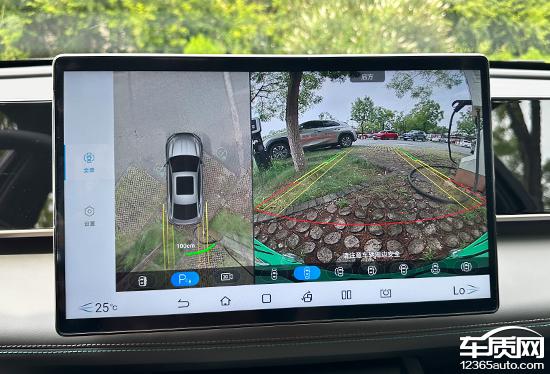 评估车辆的配置 360 全景图像,还配有随动转向的倒车辅助线,画质清晰度高,实用性能优异。