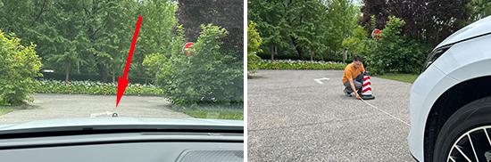 我们采用高度高度来测试前方视野阶段。 70cm 以桩桶为参考,然后调整车距,直到主驾驶座可以看到桩桶的上缘。经过测试,桩桶和车前最后测量的数据是 2.5m,测试过的同级别车型处于中下游水平。