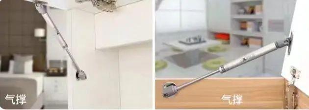 像橱柜吊柜一按即开的效果是通过气撑杆来达到的,气撑分为普通气撑和随意停气撑。其中,随意停气撑的使用体验更好,可以方便地停在相应的高度。 / 视角,既不会碰面,也不会让柜门翻出足够的高度。
