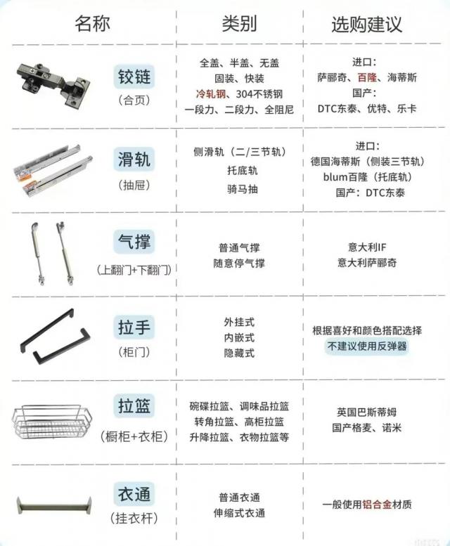 ✅ 重点介绍铰链,导轨,衣通,气撑,拉手,橱柜拉篮,并提出购买建议。