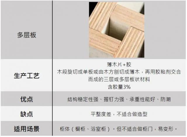 也叫胶合板,可以想象成威化饼干。全网都说胶合板含胶量高,但多层板含胶量一般。 常是 3% 上下(颗粒板含胶量) 10%)。