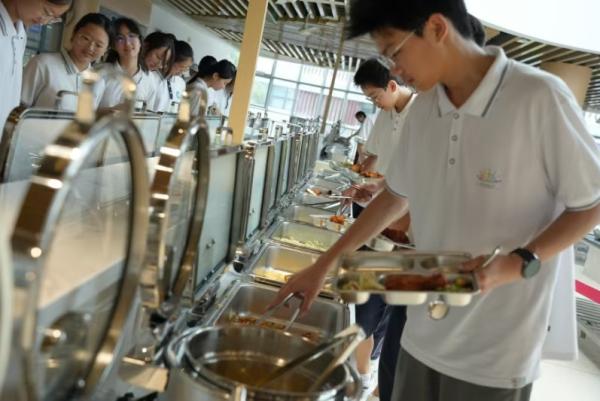 “与传统的食堂配餐模式相比,自助餐模式首先可以使学生的饮食营养更加均衡;其次,学生在排队选菜、‘光盘’的过程中,会培养遵守秩序、勤俭节约的美德。”朱哲清告诉《ThePaper》,“自助餐目前赢得了学生和家长的一致好评。这种模式实施后,食堂的食物浪费明显减少。”
