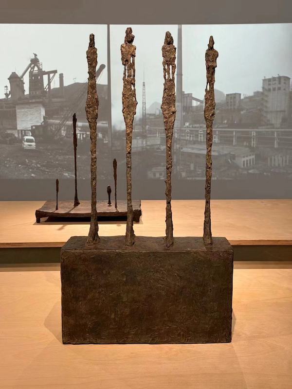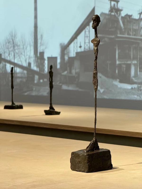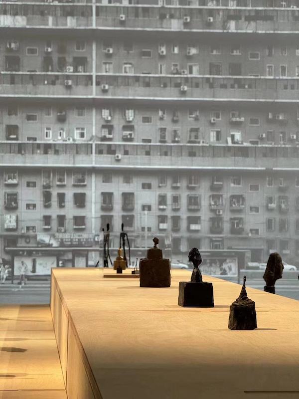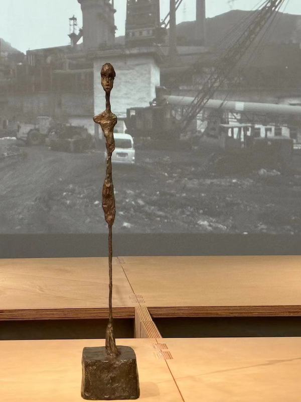 这个展厅的空间是方形的,周围的图像也是排列整齐的住宅,与贾科梅蒂基座的稳定性形成了巧妙的呼应。