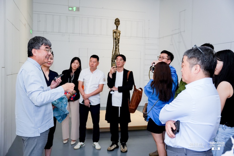 建筑师张永和,法国贾科梅蒂基金会馆藏与学术项目总监埃米莉·布瓦尔(Émilie Bouvard)这次展览是联合策划的。谈到贾科梅蒂作品对古村落的依恋,张永和介绍,展览的灵感来自贾科梅蒂的标志性人物雕像《高女人I》和古村落的古建筑。