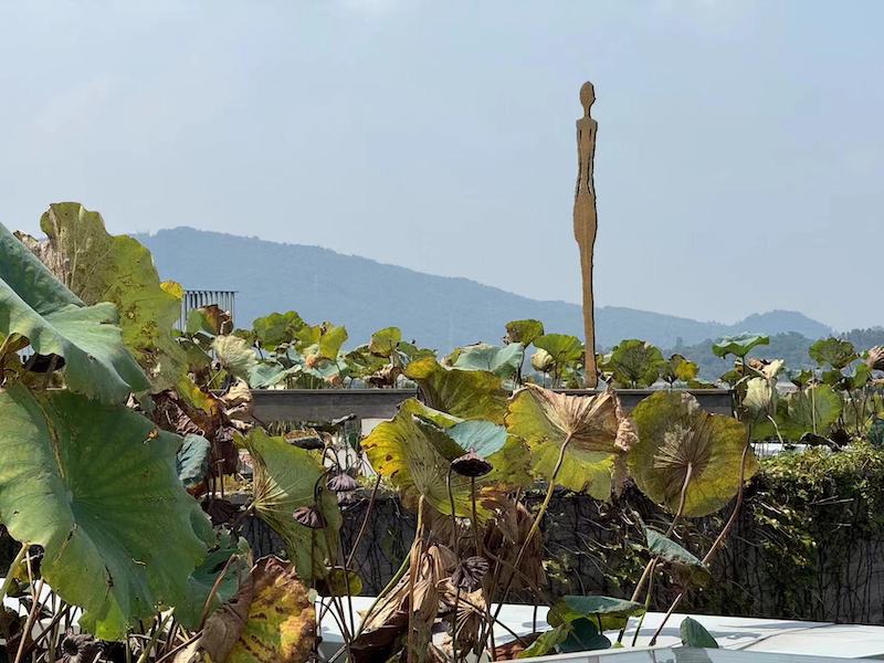 本次展览还有一个亮点。以贾科梅蒂《高女人》为原型创作的装置作品分散在春阳台屋顶的荷花池、荷塘的荷头村和老房子的屋顶上。《高女人》最初是为纽约现代百货公司的户外广场设计的。然而,贾科梅蒂从未去过美国,也不知道广场的规模。这个计划最终没有形成。