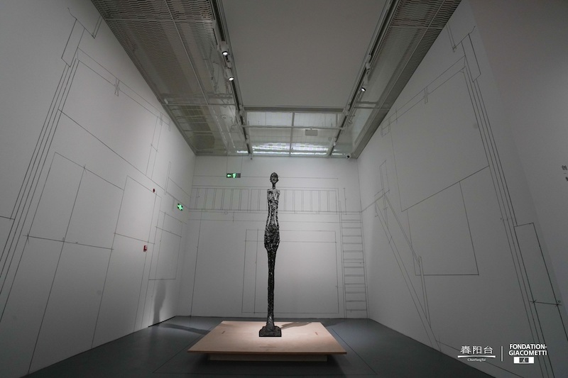 春阳台没有设计传统意义上的超大空旷展览空间,展览作品分散在一楼、二楼和屋顶空间。本次展览分为四个主题展厅,分别聚焦贾科梅蒂艺术创作的四个主要方面:从贾科梅蒂看似贫瘠的工作室出发,考察他对人类建筑的看法,对雕塑底座的执着,对“铁笼”作为结构的痴迷,对空间和空白的品味和控制。
