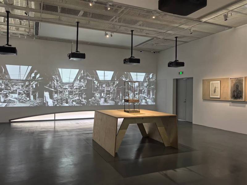走到第一个展厅的走廊两边,是曾力古村落的建筑摄影图片。浏览了岭南传统的祠堂和书院聚集区后,他走进了贾科梅蒂的“蜗居工作室”。