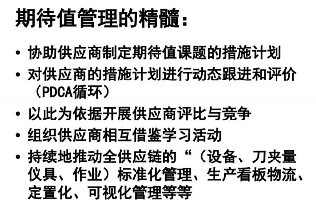 丰田期望活动强调供应商的持续改进,这意味着供应商需要不断提高生产能力和技术水平。