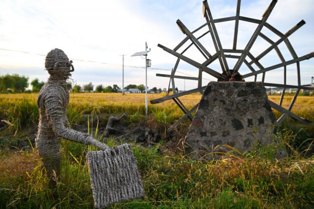 上官村建设稻田景观栈道,风车水车公园