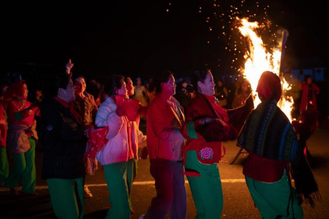 9 月 20 日本,在上官地村,村民们在篝火旁庆祝丰收。新华社记者 张涛 摄