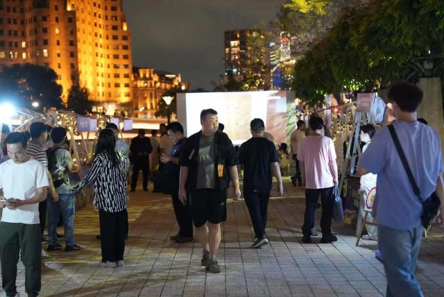 在这个快乐与温暖并存的市场中,市民和游客在各个摊位之间闲逛,捕捉外滩生活的美好,在有声、有色、有形的体验中勾勒出生动的夜生活画轴。