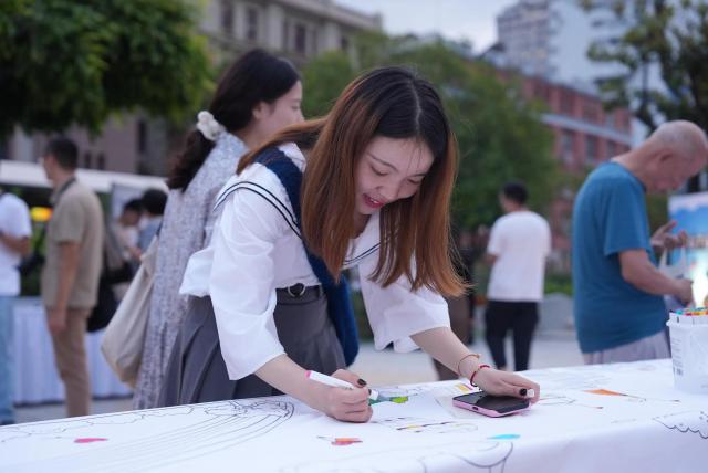 在画外滩的摊位上,每个人都充分发挥了无限的创意,以外滩的天际线为主题,在空白的涂鸦画布上自由挥洒,为外滩增添了五颜六色的色彩和图案。