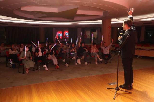 最后,老师带领年轻学生模拟表演,让年轻学生在实战中训练舞台表演,包括肢体语言、面部情绪、声音运用等。同时,教授如何与观众有效互动,营造轻松愉快的表演氛围。