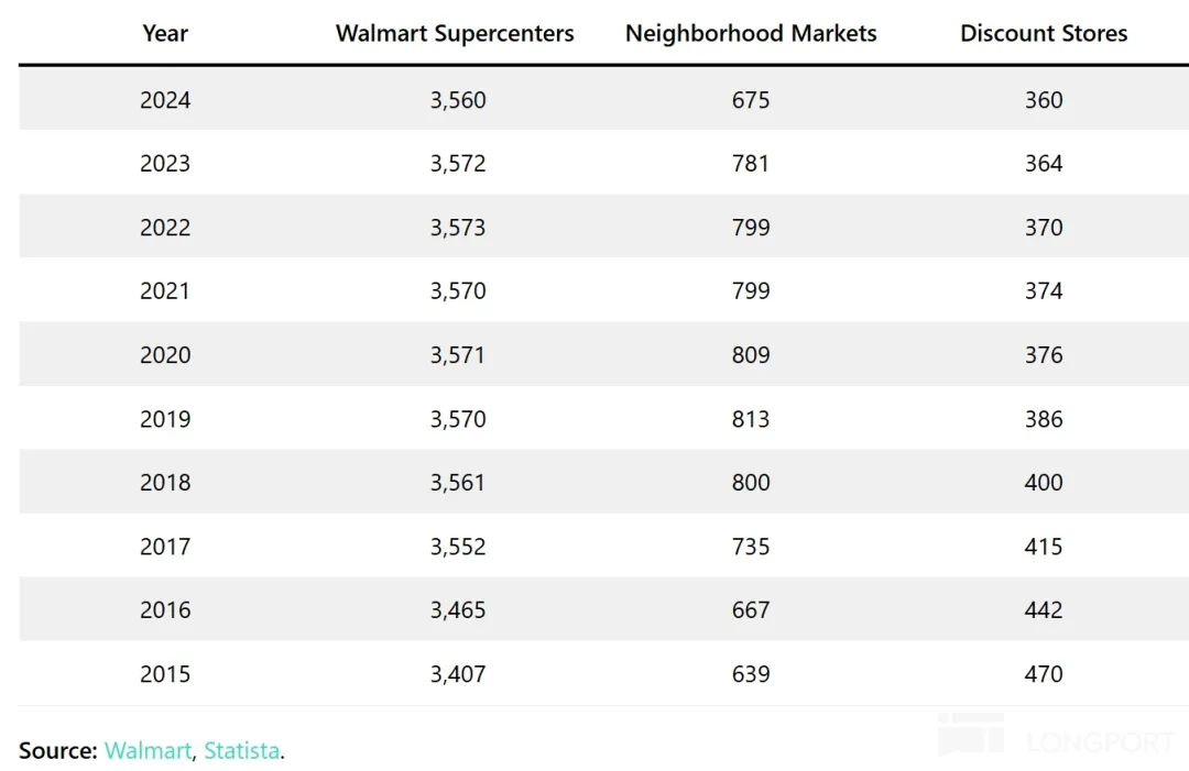 ① 第一个视角,从 Walmart vs. Costco 在比较方面,我们认为商店数量或商店密度之间的差距,很可能会导致两家商店覆盖顾客的数量大概。 2~3x 造成差距的主要原因。根据统计,目前 Walmart 美国的商店总数超过了 4600 家,其中大型超级购物中心(supercenters)数量也超 3500 家。相比之下,Costco 美国的商店数量仅限于 600 房子左右。看得见Walmart 这是美国的总店面 Costco 的 7.7x,单论大店也是如此 Costco 的 5.8x。