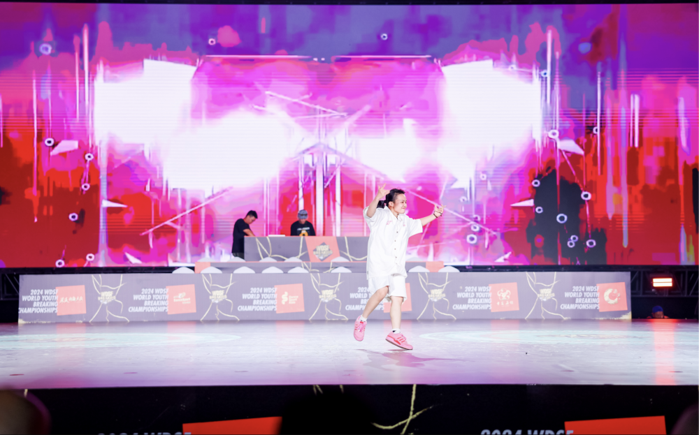 刘清漪在首届霹雳舞世界青年锦标赛开幕式上表演。中国体育舞蹈联合会提供图片