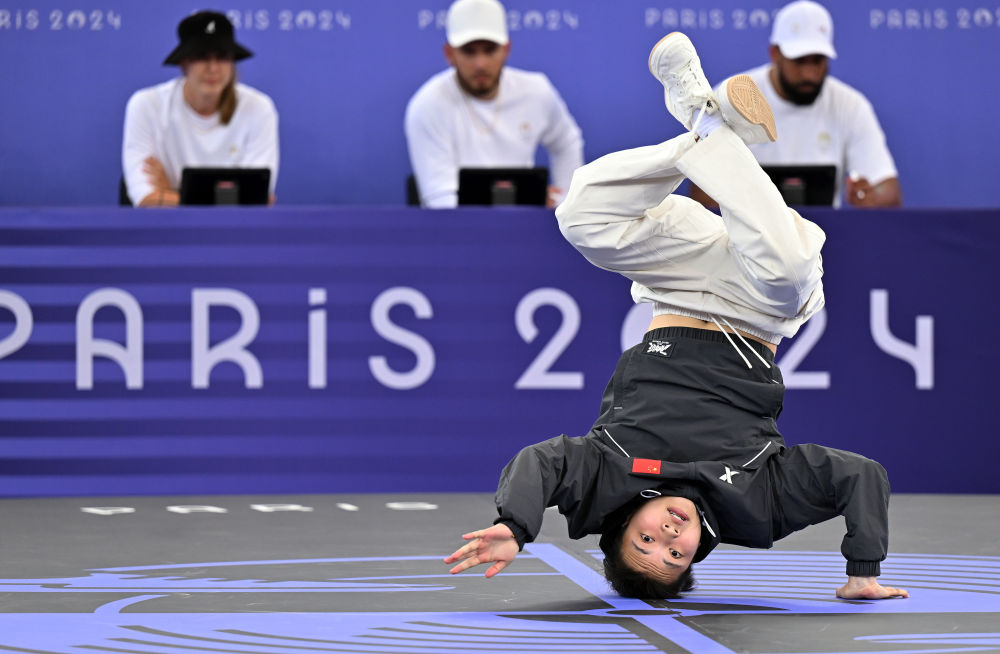 八月九日,中国选手刘清漪参加了巴黎奥运会霹雳舞女子循环赛。新华社记者 刘勇贞 摄
