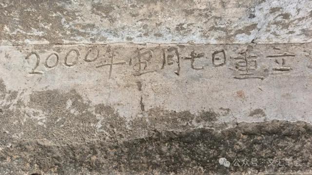 有意思的是,旁边的水泥台阶上潦草地刻了几个手写的字:20000 1月7日重立。刻痕很浅,不仔细看也注意不到。数字写作不合规。至于书法水平,感觉碑重新立起后,有一个热心的村民,没有通过水泥做任何事情来记录历史。