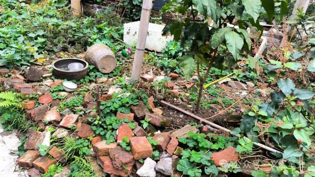 说实话,我会持怀疑态度。看错了,呵呵。我怎么能用一扇破门把这个界碑和周围变成自己的花园呢?另外,我不同意这个花园。只有几棵不能成为气候的幼苗,一棵香蕉树看起来不像是可以结果的。你为什么要这样做?地上到处都是碎砖和岩石。你一定把一块石头当成界碑了吗?
